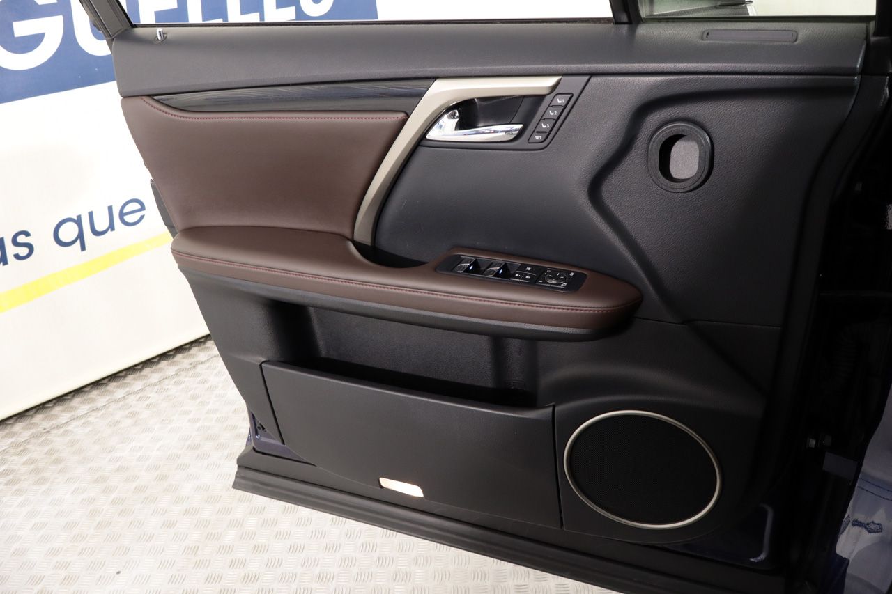 Estéticamente, este RX 450h destaca por su elegante pintura azul metalizado que realza sus líneas dinámicas, complementada por llamativas llantas de aleación de 20 pulgadas. La funcionalidad no se queda atrás, con un portón trasero eléctrico que facilita la carga y descarga, y retrovisores abatibles eléctricamente para mayor comodidad en espacios reducidos. Es un vehículo que combina la robustez de un 4x4 con la sofisticación de un sedán de lujo, ideal para quienes buscan versatilidad sin comprometer el estilo.
