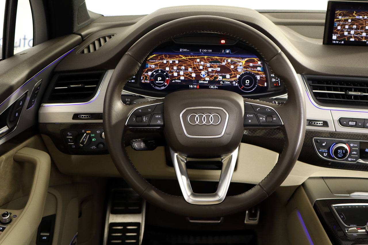 Frenos cerámicos, suspensión neumática, techo solar panorámico, tapicería de cuero Valcona bitono, asientos eléctricos con memoria, faros Matrix LED, asientos climatizados con masaje, sistema de navegación, cámara 360 junto con sensores de aparcamiento, climatizador de 4 zonas, Head Up Display con proyección en el parabrisas, equipo de sonido Bosé, alerta de vehículos en ángulo muerto y de salida involuntaria de carril, regulador de velocidad ADAPTATIVO, volante multifunción eléctrico, portón trasero eléctrico, retrovisores en carbono abatibles eléctricamente, servocierre de puertas, acceso sin llave, calefacción y ventilación estacionaria, visión nocturna, detalles exteriores en negro brillo, ionizador de aire, vola de remolque, iluminación ambiente, Audi Phone Box, lunas insonorizadas acústicas, llantas de aleación en 22, pintura azul metalizado, 4x4, Bluetooth, conexión AUX y USB.