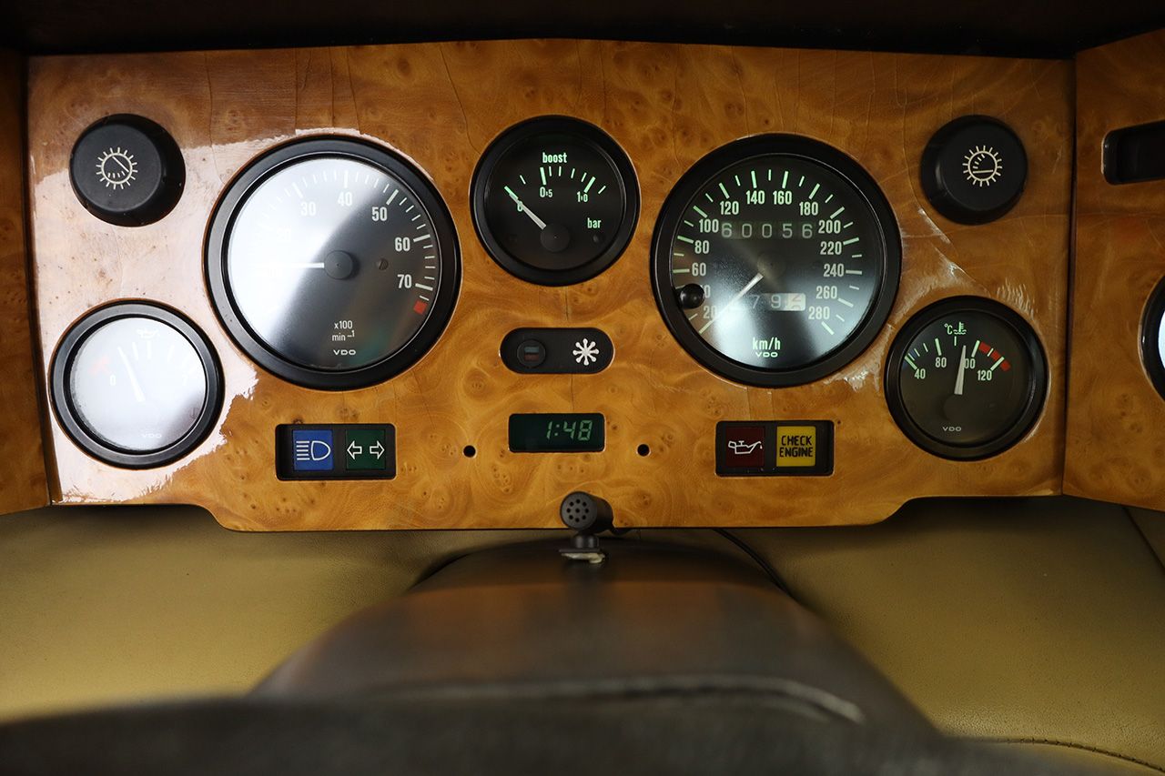 El diseño del Lotus Esprit es, sin duda, una de sus características más distintivas. Su carrocería coupé, con líneas angulosas y una silueta baja y afilada, es una obra de arte atemporal que sigue atrayendo miradas y desafiando las convenciones estéticas. Esta unidad específica se presenta con una impresionante pintura en color rojo, que realza sus formas esculturales y le confiere una presencia inigualable en la carretera, destacando su naturaleza deportiva y su elegancia innata. El interior no se queda atrás en sofisticación; un habitáculo tapizado en cuero beige crea un contraste elegante y acogedor, complementado a la perfección por las molduras interiores en madera. Esta combinación de materiales y colores no solo subraya el lujo y la artesanía del vehículo, sino que también ofrece un ambiente de conducción que es tanto deportivo como sumamente confortable, un verdadero santuario para el conductor y su pasajero, donde cada detalle ha sido pensado para el disfrute.