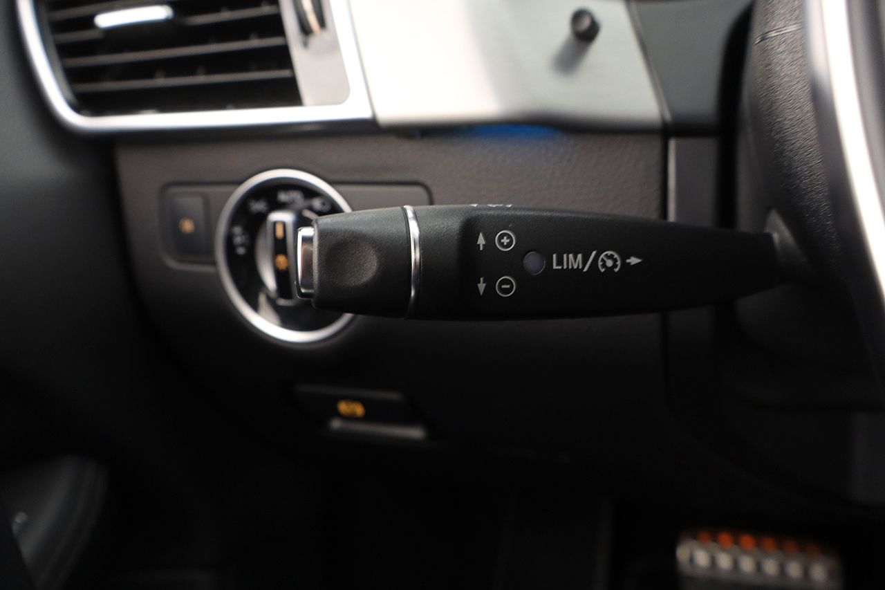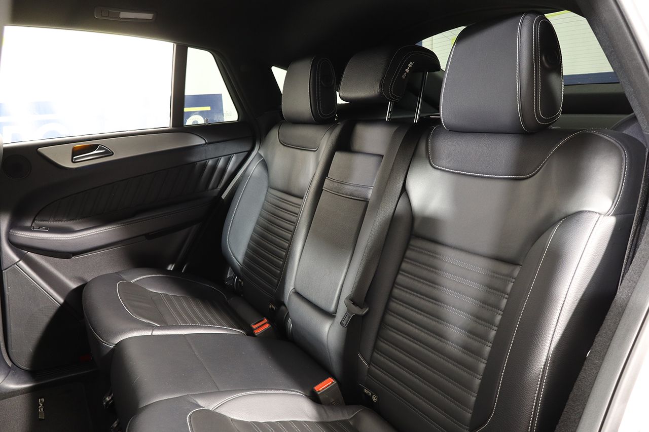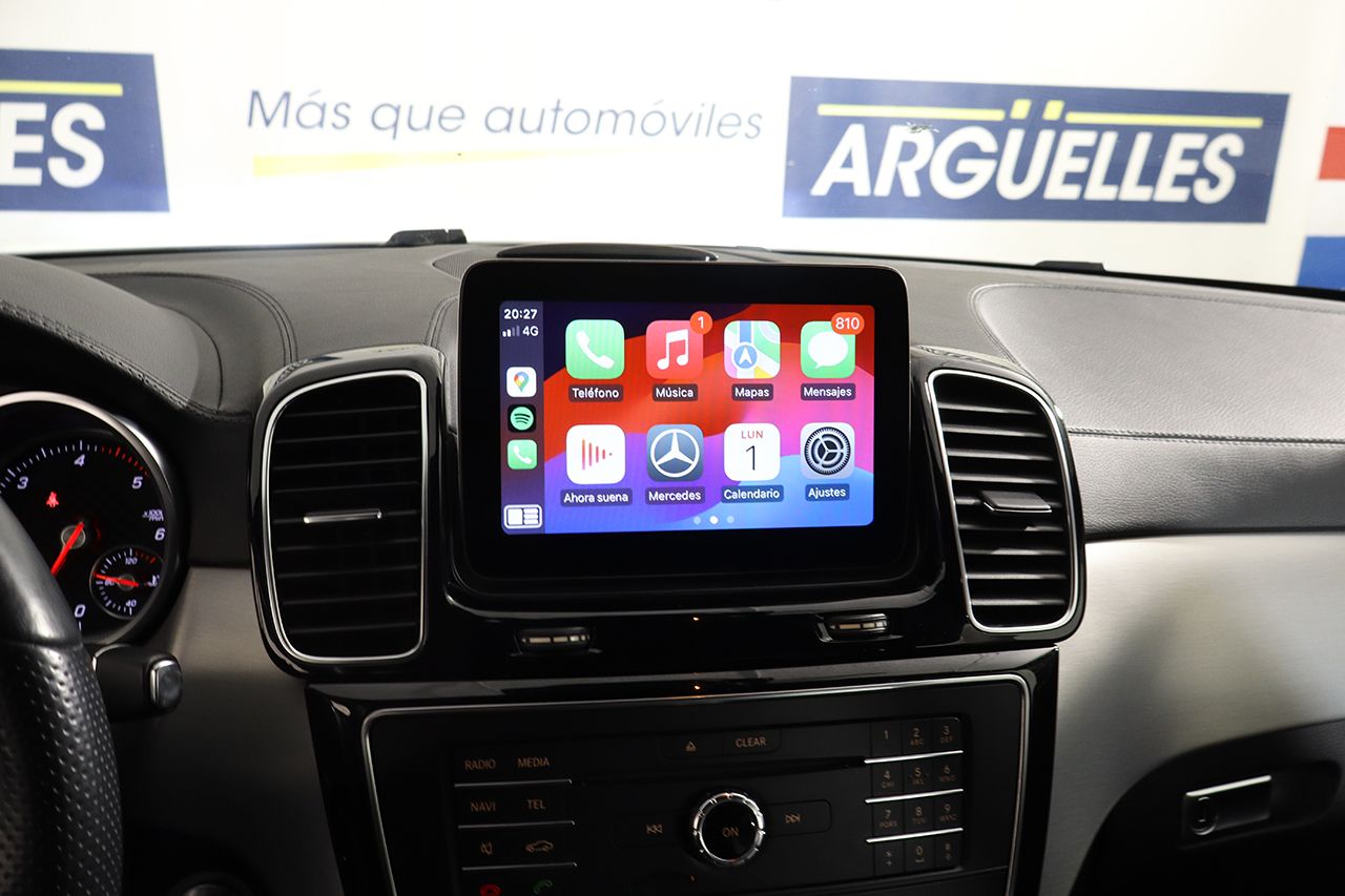 Suspensión neumática Airmatic, tapicería de cuero negro napa negro, asientos eléctricos, asientos calefactados, faros LED ILS, sistema de navegación COMAND Online, cámara 360 junto con sensores de aparcamiento, sistema de sonido Harman Kardon, climatizador de 3 zonas, regulador de velocidad, ordenador de viaje, sensor de lluvia y luces, portón trasero eléctrico, volante multifunción con levas de cambio, retrovisores abatibles eléctricamente, paquete Night con detalles exteriores en negro brillo y lunas traseras tintadas, 4x4, Paquete de integración de smartphone, iluminación ambiente, estribos de aluminio iluminados con tacos de goma, pintura plata Iridio metalizado, llantas de aleación AMG de 21.