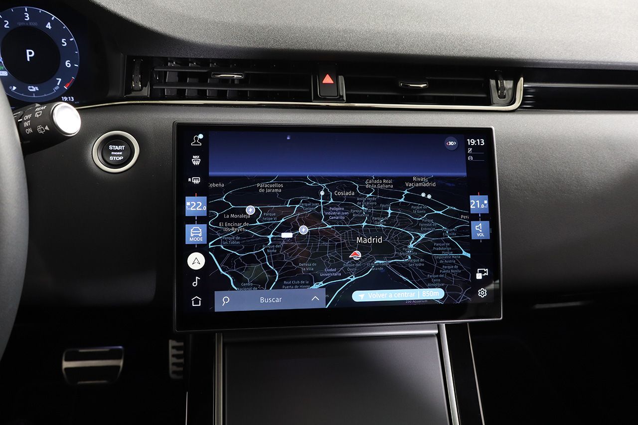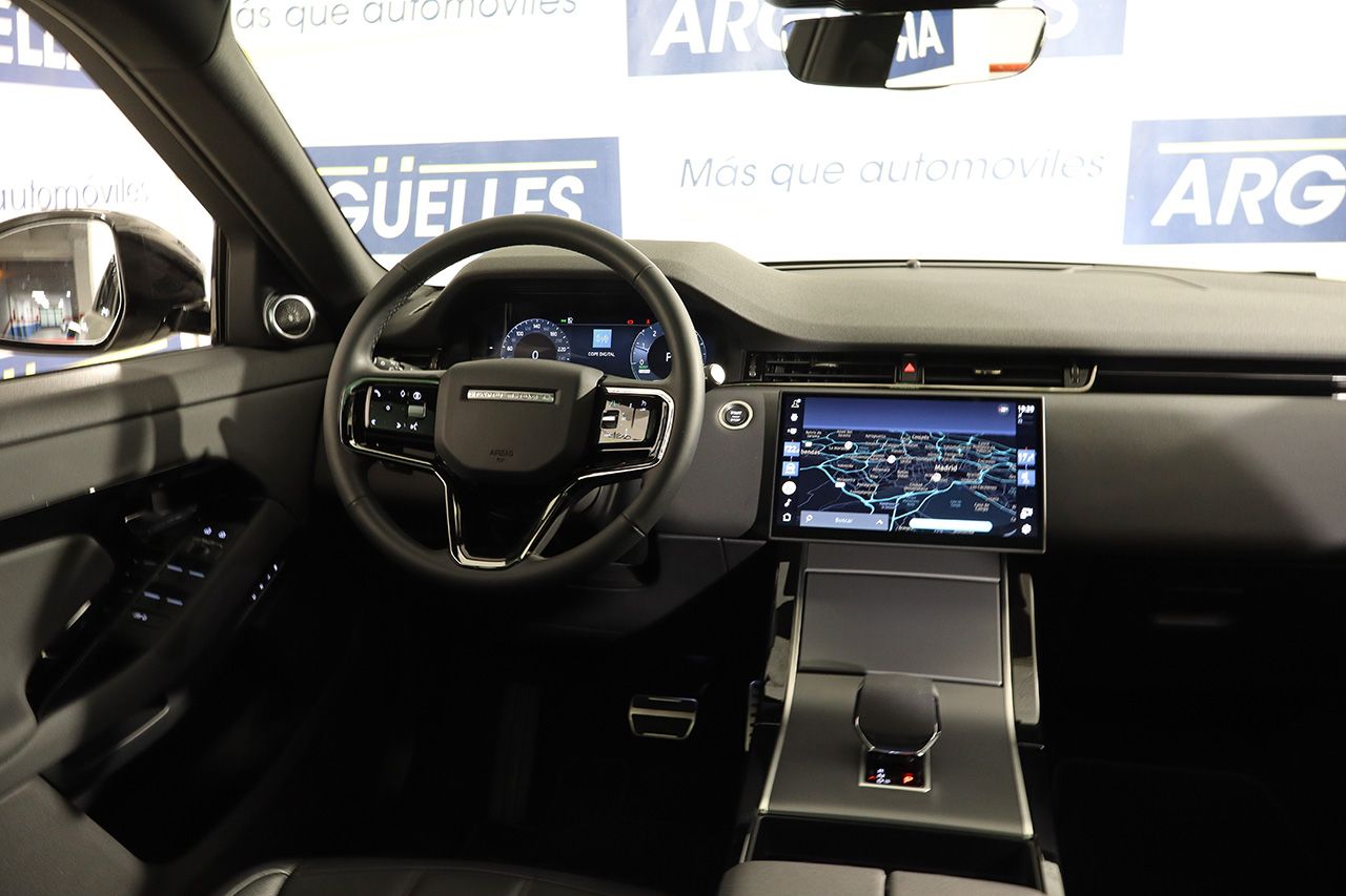 Este Evoque no solo destaca por su lujo y eficiencia, sino también por sus capacidades dinámicas. Su sistema de tracción 4x4 le permite afrontar cualquier terreno con seguridad y control. Las llantas de aleación de 19 pulgadas refuerzan su presencia robusta y elegante.