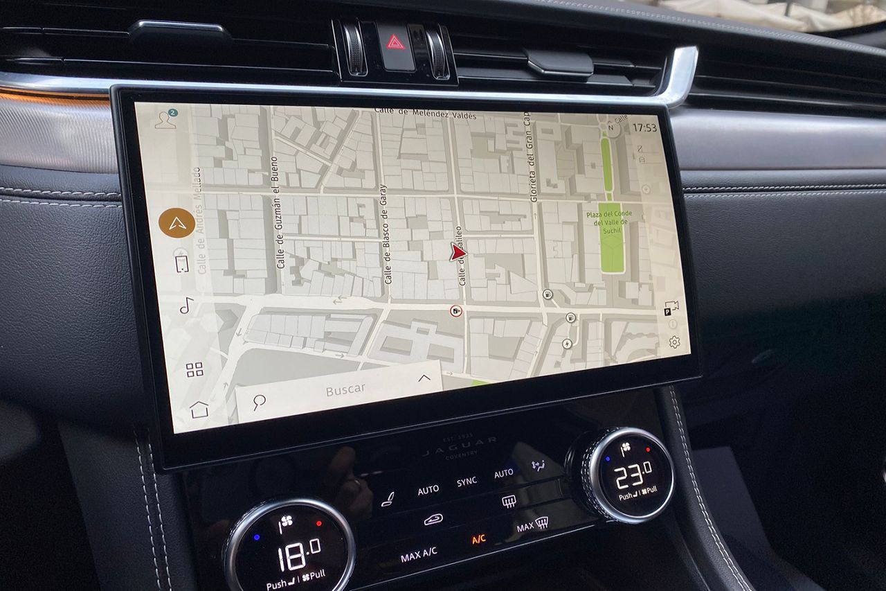 El interior de este F-PACE R Dynamic es un santuario de lujo y tecnología diseñado para el máximo confort. La exquisita tapicería de cuero negro de alta calidad, combinada con un espectacular techo solar panorámico, crea un ambiente espacioso, luminoso y sumamente elegante. La comodidad está asegurada para todos los ocupantes gracias a los asientos eléctricos con memoria para el conductor y los asientos calefactados, perfectos para cualquier clima. El avanzado sistema de infoentretenimiento Pivi Pro es intuitivo y rápido, integrando navegación de última generación, conectividad Apple CarPlay y Android Auto inalámbricos, y radio DAB. Además, la carga inalámbrica para dispositivos móviles añade un toque de modernidad y conveniencia, manteniendo tu tecnología siempre lista.