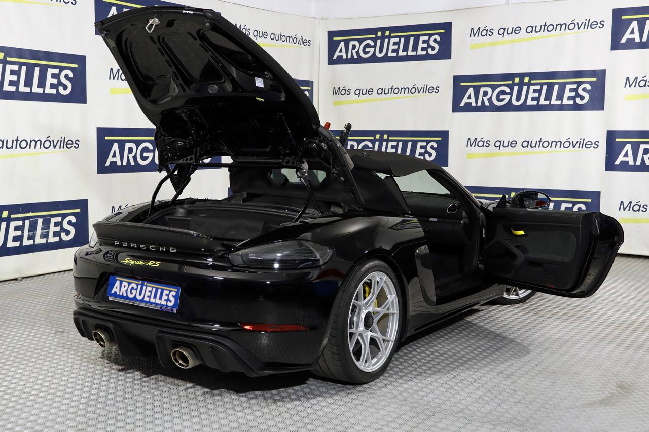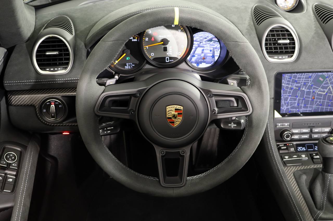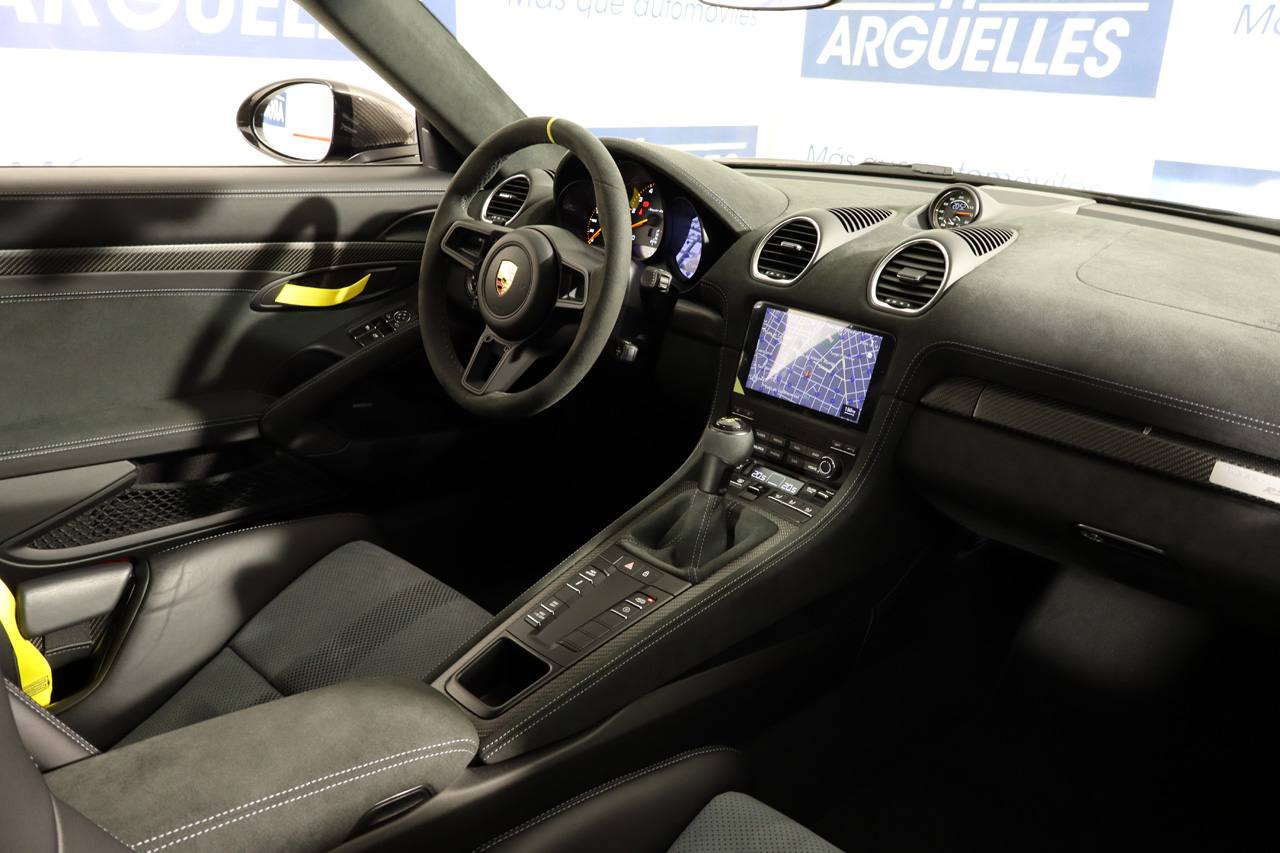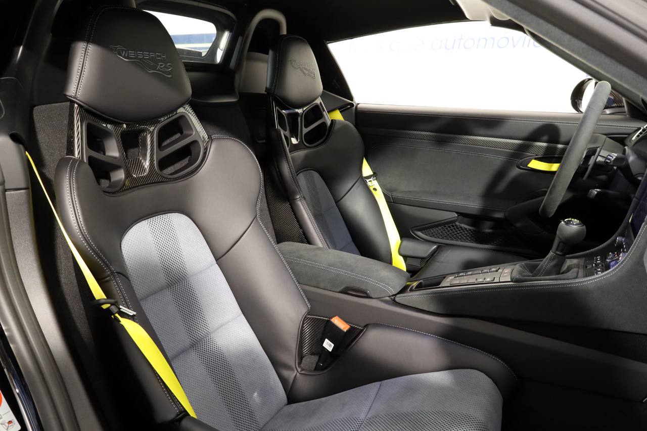 Frenos cerámicos, paquete Weissach, paquete Sport Chrono, asientos tipo Buquet de carbono, tapicería de cuero mixto, sistema de navegación, , cámara de visión trasera junto con sensores de aparcamiento, equipo de sonido Bosé, climatizador bizona, regulador de velocidad, ordenador de viaje, sensor de luces, volante en alcántara Race Tex con costuras en amarillo, levas de cambio, tiradores de puerta en amarillo Racing a juego con los cinturones, molduras interiores en carbono, salpicadero en alcántara Race Tex, capó de carbono, iluminación interior, escape deportivo, depósito de combustible de 90 litros, paquete Accent, llantas de aleación RS Spyder de aluminio forjado en 20, Bluetooth, conexión AUX y USB.