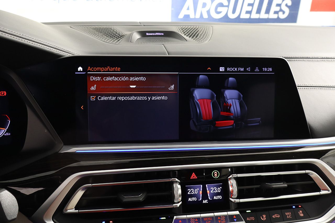 Suspensión neumática con barras estabilizadoras, techo solar panorámico Sky Lounge, tapicería de cuero Merino Individual ampliado, asientos eléctricos con memoria y masaje, faros Láser LED, asientos calefactados y ventilados, sistema de navegación, sistema de entretenimiento trasero con pantallas, cámara 360 junto con sensores de aparcamiento, Head Up Display con proyección en el parabrisas, equipo de sonido Bowers & Wilkins Diamond, climatizador de 5 zonas con volante y reposabrazos calefactados, alerta de salida involuntaria de carril y de vehículos en ángulo muerto, regulador de velocidad ADAPTATIVO, portón trasero eléctrico, retrovisores abatibles eléctricamente, visión nocturna, calefacción auxiliar, molduras interiores de madera Fineline Stripe, BMW Display Key, carga inalámbrica junto con Apple CarPlay, 4x4, lunas traseras tintadas, 4x4, pintura negro metalizado, llantas de aleación en 22, Bluetooth, conexión AUX y USB.