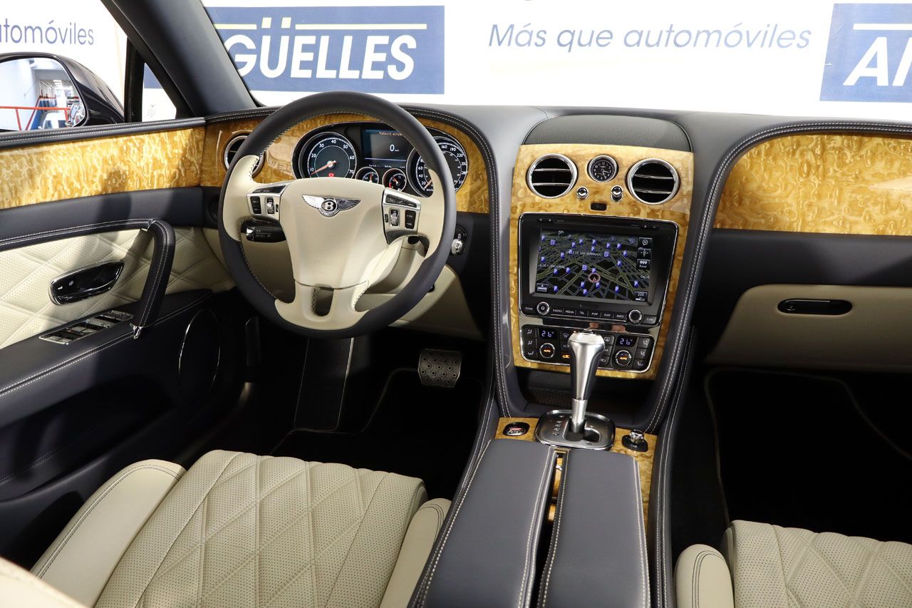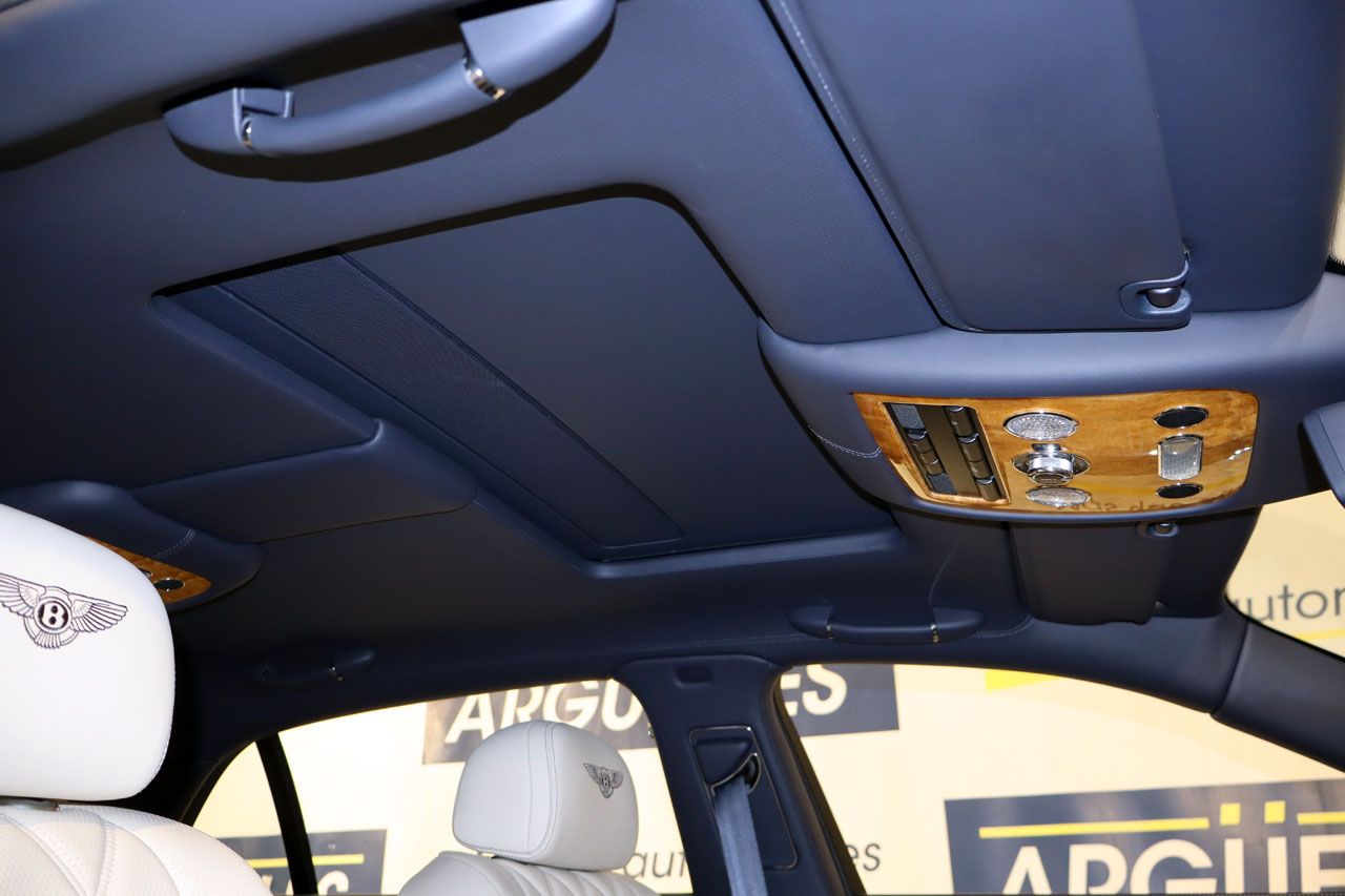 Equipamiento completísimo con suspensión neumática, techo solar, tapicería de cuero bitono ampliada Mulliner con costura de rombos en los asientos, asientos delanteros y traseros eléctricos con memoria y masaje, faros bixenón, asientos delanteros y traseros calefactados, sistema de navegación, cámara de visión trasera junto con sensores de aparcamiento, climatizador bizona, regulador de velocidad, ordenador de viaje, portón trasero eléctrico, retrovisores abatibles eléctricamente, televisión, cortinilla trasera eléctrica, techo interior en cuero completo, cierre de puertas softclose, molduras interiores en madera, acceso y arranque sin llave, volante multifunción eléctrico y calefactado, pintura azul metalizado, llantas de aleación en 21, Bluetooth.