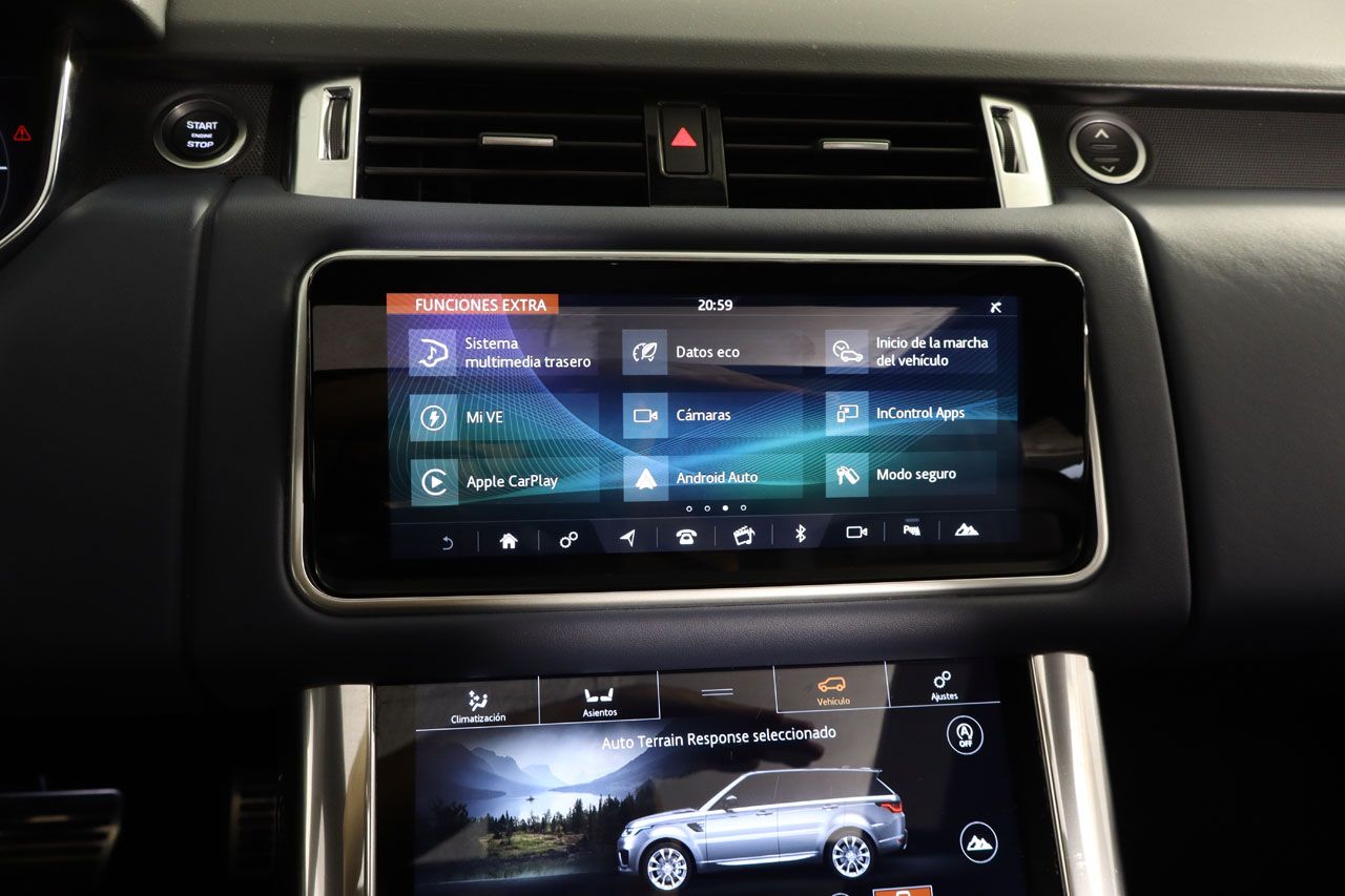 Línea de equipamiento HSE Dynamic, suspensión neumática, techo solar panorámico, sistema de infoentretenimiento trasero con pantallas, tapicería de cuero ampliado azul, asientos eléctricos con memoria, sistema de navegación, faros LED, asientos calefactados, cámara de visión trasera junto con sensores de aparcamiento, climatizador bizona, equipo de sonido Meridian, alerta de salida involuntaria de carril, regulador de velocidad, retrovisores abatibles eléctricamente, portón trasero eléctrico, paquete exterior con detalles en negro brillo, pinzas de freno en rojo, Apple CarPlay y Android Auto, lunas traseras tintadas, 4x4, Bluetooth, conexión AUX y USB.