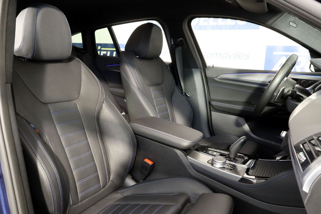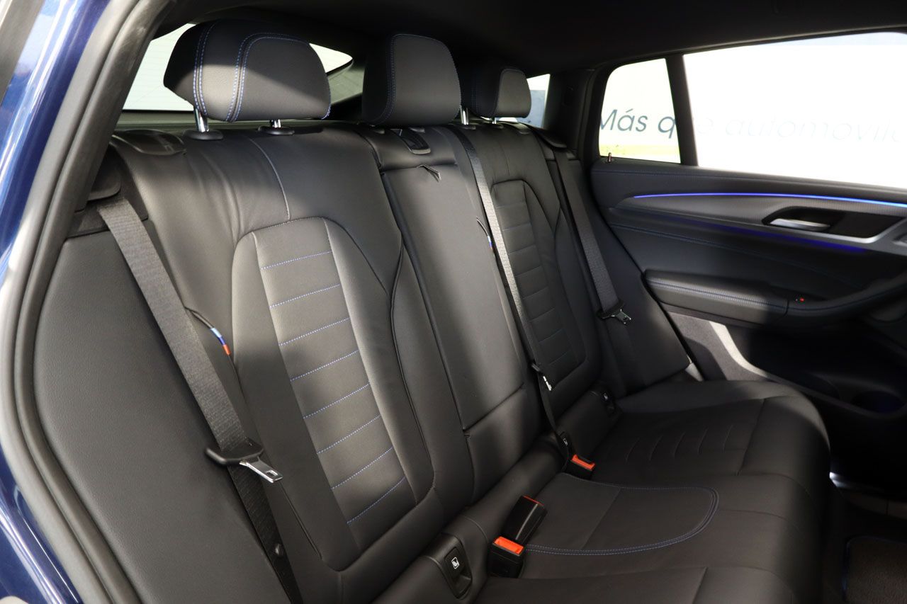 La comodidad se extiende a cada detalle: acceso sin llave para una entrada y arranque sencillos, portón trasero eléctrico para facilitar la carga, retrovisores abatibles eléctricamente, y cristales tintados y acústicos que garantizan privacidad y un habitáculo silencioso. La carga inalámbrica para tu smartphone, la alarma para tu tranquilidad y el sensor de lluvia y luces son solo algunos ejemplos de la atención al detalle que hacen la vida a bordo mucho más agradable. Este BMW X4 M40i, con su estética deportiva y sus llantas de diseño dinámico, no solo rinde a la perfección, sino que también cautiva miradas por donde pasa.