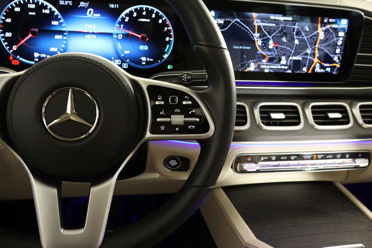 Suspensión neumática, techo solar panorámico, tapicería de cuero ampliado bitono, asientos eléctricos multicontorno con memoria, faros Multibeam LED, asientos calefactados y ventilados, sistema de navegación, asientos con masaje, cámara 360 junto con sensores de aparcamiento, climatizador de 4 zonas, equipo de sonido Burmester, Head Up Display con proyección en el parabrisas, alerta de vehículos en ángulo muerto y de salida involuntaria de carril, regulador de velocidad ADAPTATIVO, retrovisores abatibles eléctricamente, volante multifunción calefactado con levas de cambio, carga inalámbrica junto con Apple CarPlay y Android Auto, acceso sin llave, paquete Night con detalles exteriores en negro brillo y lunas traseras tintadas, iluminación ambiente, estribos laterales en aluminio iluminados, servocierre de puertas, portavasos climatizado, 4x4, llantas de aleación en 22, pintura blanco brillante Designo, Bluetooth, conexión AUX y USB.