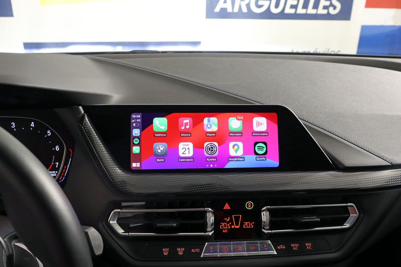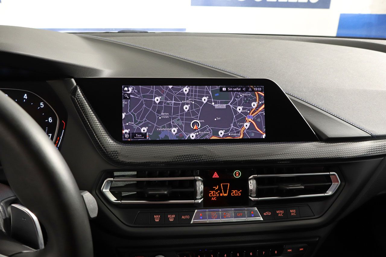 Tecnología y Seguridad a la Vanguardia Este BMW M 135i xDrive está equipado con una lista impresionante de características que elevan la comodidad y la seguridad a otro nivel. Disfrute de la facilidad de uso del sistema de navegación, los sensores de aparcamiento que facilitan las maniobras, y los faros LED que garantizan una visibilidad excepcional. La seguridad activa se refuerza con la alerta de salida involuntaria de carril y el regulador de velocidad. La conectividad es total gracias al BMW Live Cockpit Plus, Connected Package Professional, Apple CarPlay y Android Auto inalámbricos, radio DAB, Bluetooth, y conexiones AUX y USB. Además, cuenta con acceso y arranque sin llave, retrovisores abatibles eléctricamente y antideslumbrantes, volante multifunción con levas de cambio, y sensor de lluvia y luces.